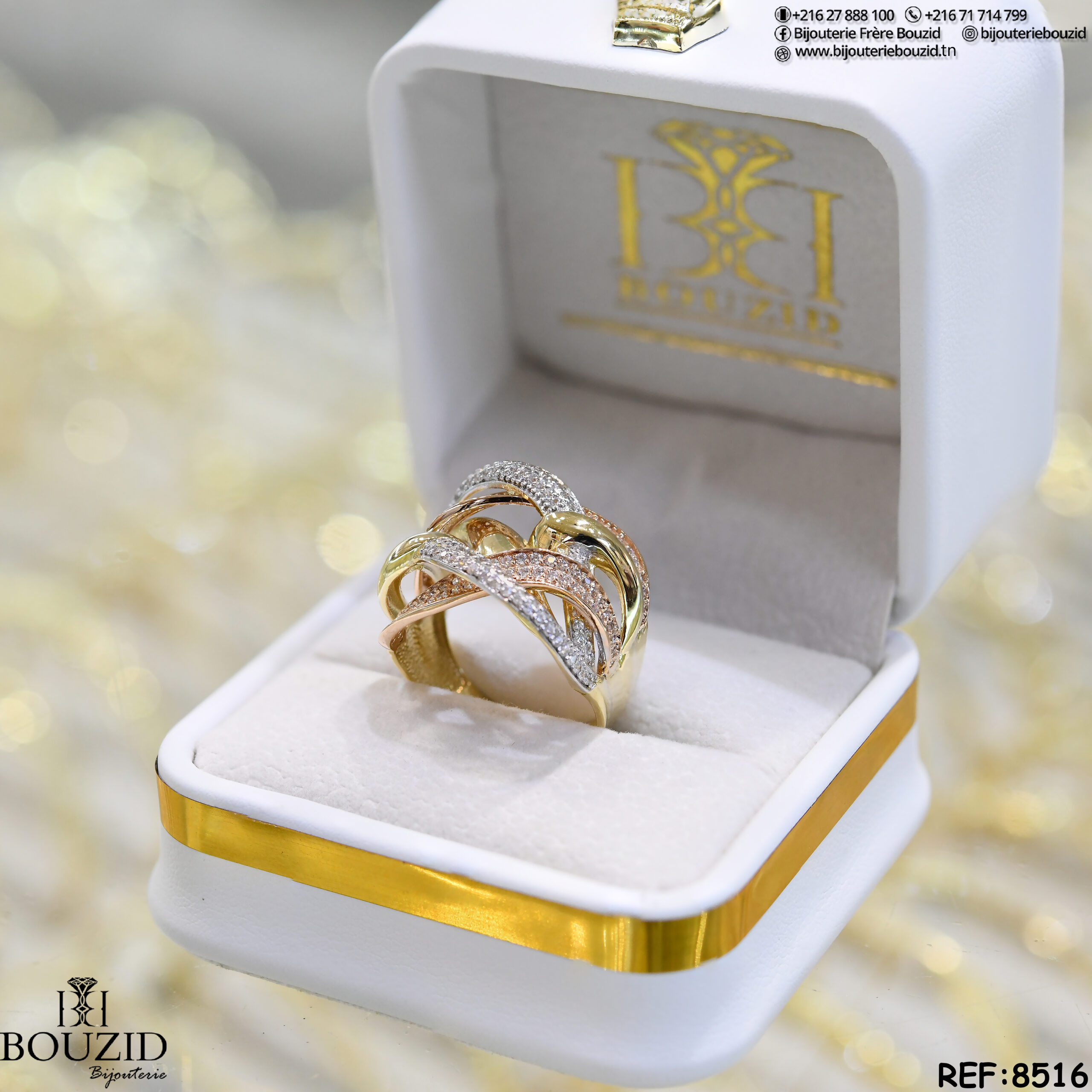Bague en or 18K bombée bicolore – Finition ajourée élégante | Tunisie