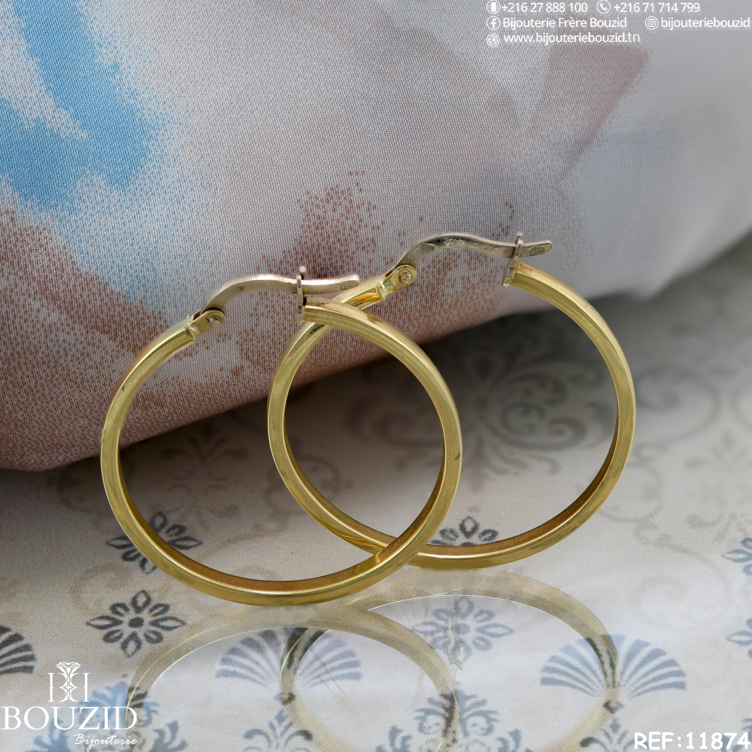 Sublimez votre style avec nos boucles créoles en or 18K, au design raffiné et moderne. Disponibles dès maintenant chez Bijouterie Frères Bouzid, Ariana.