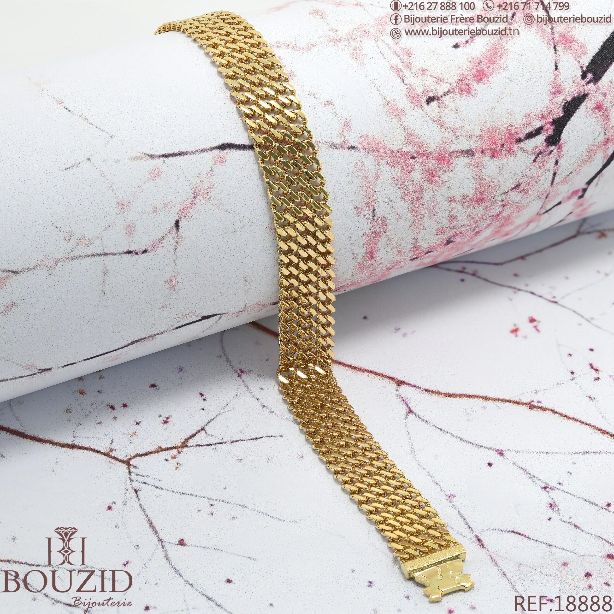 Le bracelet en or 18K signé Bijouterie Frères Bouzid incarne l’excellence du savoir-faire tunisien.