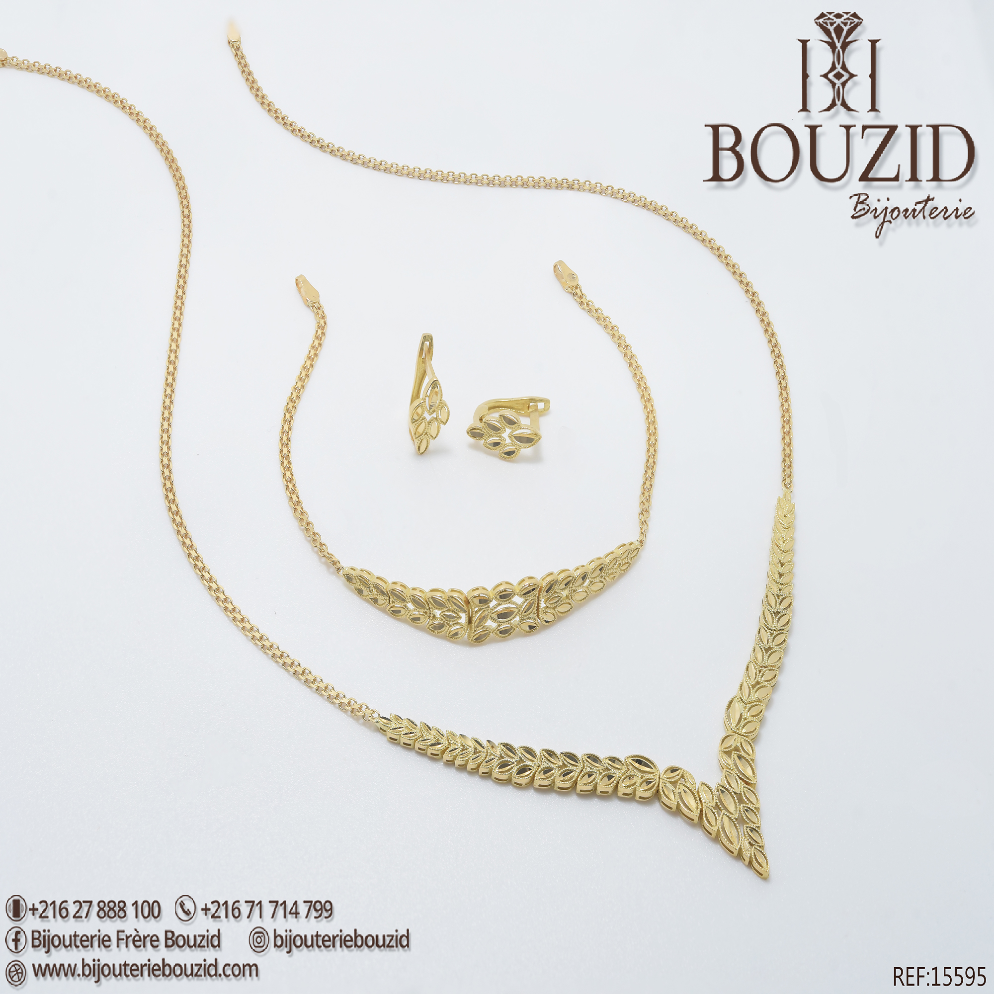 Parure Or Jaune 18K – Motif Feuille Élégant | Bijouterie Frères Bouzid Tunisie